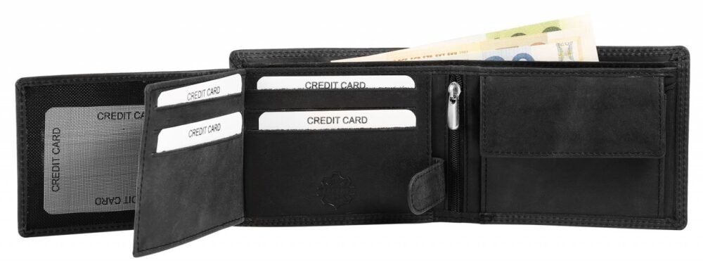 - Tem 6 compartimentos para cartões de crédito, 2 compartimentos para notas, 1 compartimento para moedas com fecho de pressão, 1 compartimento interno com zíper, 2 bolsos internos e 3 bolsos transparentes para documentos de identidade, e um fecho de pressão extra interno mantém seus cartões seguros.