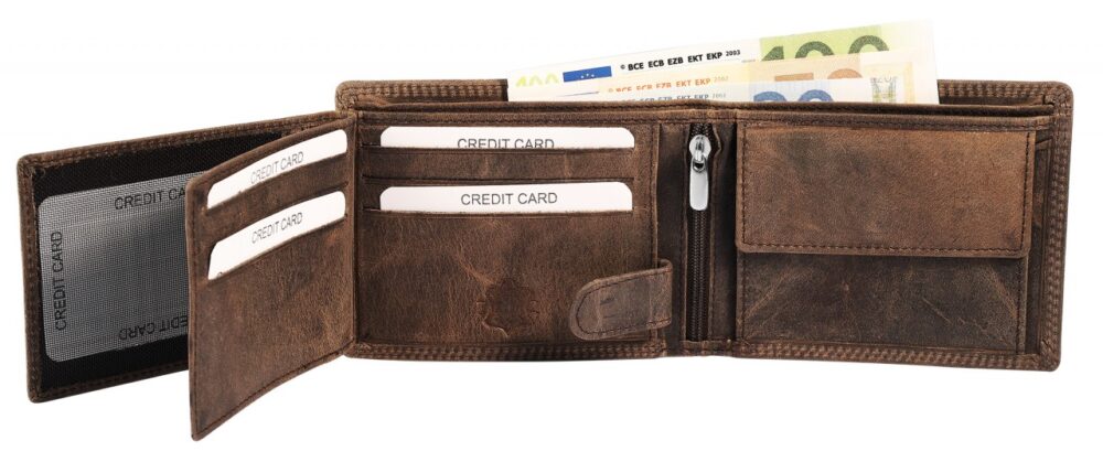 - Tem 6 compartimentos para cartões de crédito, 2 compartimentos para notas, 1 compartimento para moedas com fecho de pressão, 1 compartimento interno com zíper, 2 bolsos internos e 3 bolsos transparentes para documentos de identidade, e um fecho de pressão extra interno mantém seus cartões seguros.
