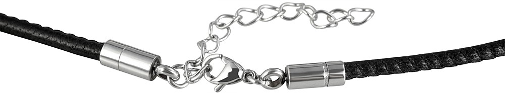 O colar da marca Akzent é feito de uma tira de couro genuíno com 2 mm de largura e está disponível em diferentes comprimentos. Uma corrente de extensão de 5 cm em aço inoxidável está ligada a uma extremidade da corrente, o que permite variar o comprimento individualmente. O fecho de lagosta também é feito de aço inoxidável. O acabamento da superfície tem um aspeto liso e brilhante. O colar também pode ser combinado com um pendente, conforme desejado, permitindo-lhe criar um visual diferente num instante.