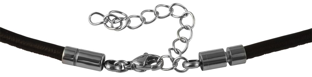 O colar da marca Akzent é feito de uma tira de couro genuíno com 3 mm de largura e está disponível em diferentes comprimentos. Uma corrente de extensão em aço inoxidável de 5 cm está ligada a uma extremidade da corrente, o que permite variar o comprimento individualmente. O fecho de lagosta também é feito de aço inoxidável. O acabamento da superfície tem um aspeto liso e brilhante. O colar também pode ser combinado com um pendente, conforme desejado, permitindo-lhe criar um visual diferente num instante.