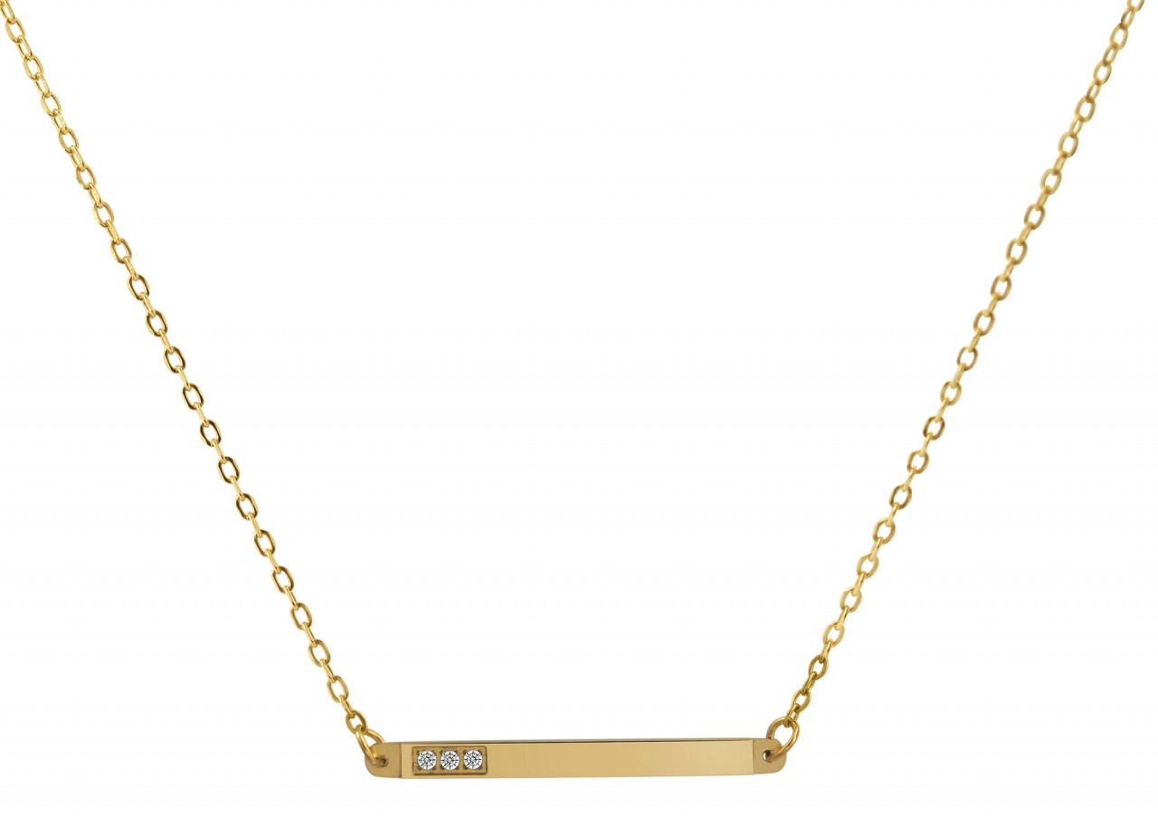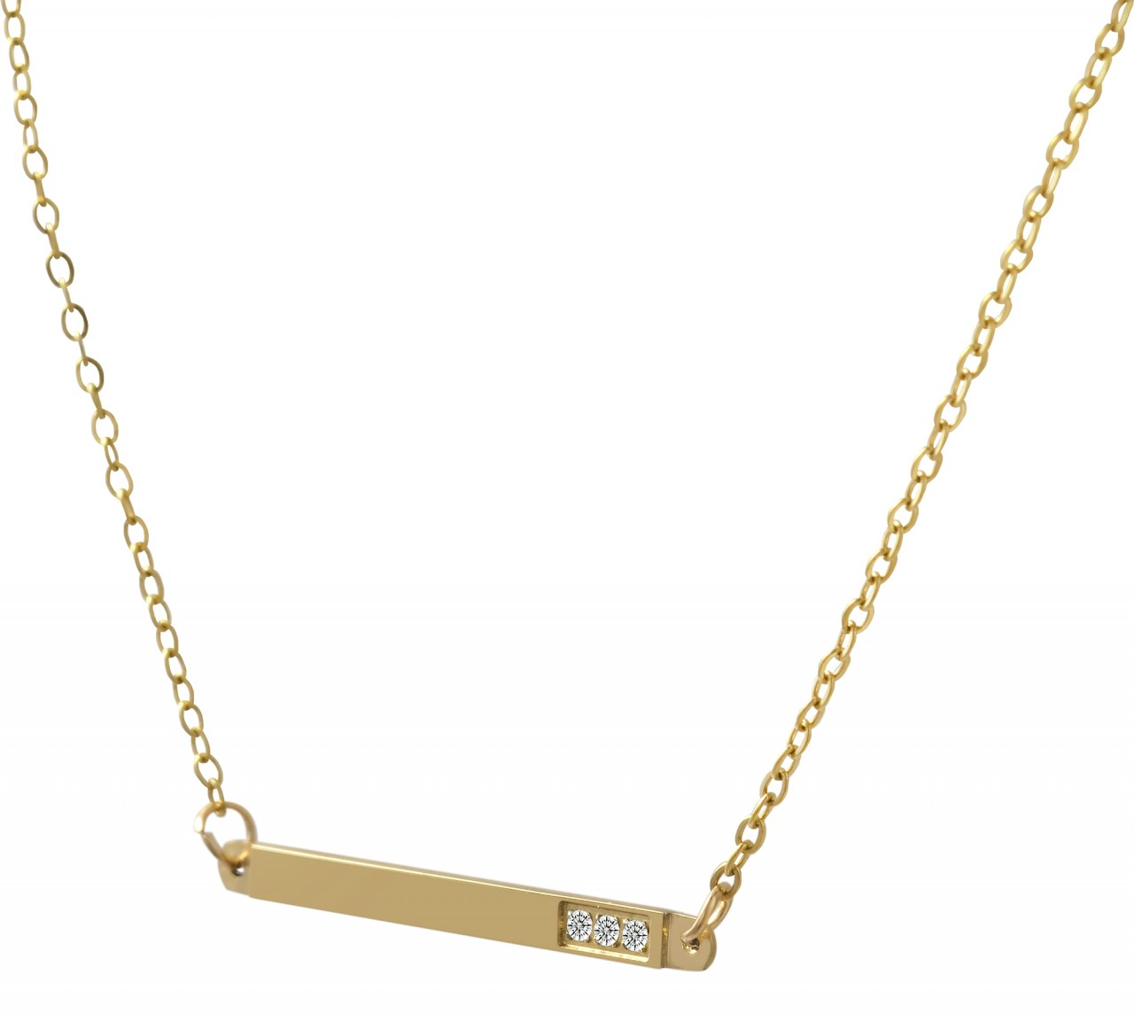 O colar da marca Praktik é feito de aço inoxidável no padrão corrente âncora e está disponível em várias cores. Tem 43 cm de comprimento e também possui uma corrente extensora de 5 cm presa em uma das pontas da corrente, o que permite variar o comprimento em 5 cm. A corrente é interrompida ao meio por uma barra de aço inoxidável. Este é decorado com três pedras semelhantes brilhantes. Cria um visual fascinante e é ideal para vários tipos de gravuras. A possibilidade de design individual torna o colar uma ideia excelente e pessoal para presente. O material é muito robusto, durável e também adequado para quem sofre de alergias, uma vez que o aço inoxidável é particularmente amigo da pele. Além disso, as joias são parcialmente refinadas com revestimento iônico de alta qualidade.