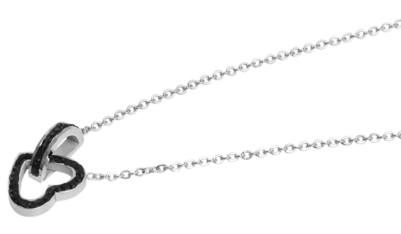 Este colar de aço inoxidável irá encantar todos os amantes de joias à primeira vista! A corrente de 43 cm de comprimento é adornada com dois pingentes entrelaçados que se harmonizam perfeitamente entre si. Os dois pingentes são decorados com lindos enfeites semelhantes e dão ao colar uma dose extra de brilho e glamour. O coração e o anel simbolizam o amor e a união e fazem deste colar uma joia muito especial. Graças à corrente extensora de 5 cm, você pode ajustar facilmente o comprimento da corrente às suas necessidades e criar o look perfeito. O fecho lagosta proporciona uma fixação segura e garante que a corrente permaneça sempre no lugar. Esta corrente de joias…