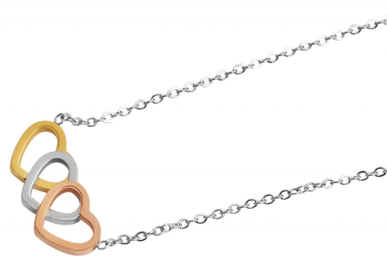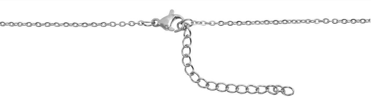 O colar da marca Akzent é feito de aço inoxidável num padrão de âncora. Um pendente com três corações está preso à corrente. A corrente de joalharia moderna pode ser aberta e fechada com um fecho de lagosta, também em aço inoxidável. Uma corrente de extensão de 5 cm está também ligada a uma extremidade da corrente, permitindo-lhe variar o comprimento até 5 cm e adaptá-la a qualquer roupa. As dimensões resultam de um comprimento de 43 cm e de uma espessura de 1 mm. O pendente tem um comprimento de 10 mm, uma largura de 25 mm e uma espessura de 4 mm.