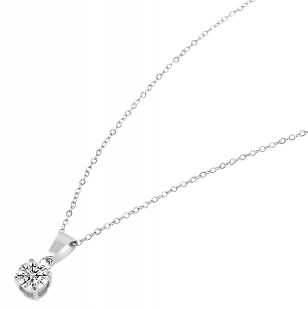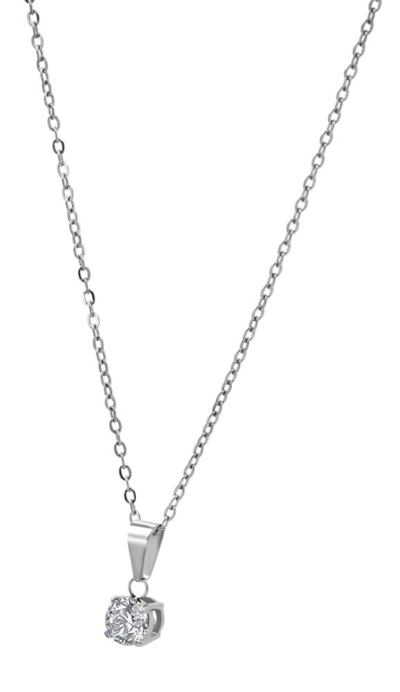 O colar tem um material muito robusto, duradouro e ideal para quem sofre de alergias, uma vez que o aço inoxidável é particularmente suave para a pele. Um pingente com uma pedra redonda de zircônia que tem um diâmetro de 8 mm e uma espessura de 7 mm. A elegante corrente para jóias pode ser aberta e fechada com um fecho lagosta, que garante uma fixação segura e impede que se abra sozinha. Além disso, uma corrente de extensão de 5 cm está ligada a uma extremidade da corrente, permitindo variar o comprimento até 5 cm para se adequar a qualquer roupa. As dimensões resultam de um comprimento de 43 cm e de uma espessura de 1 mm.