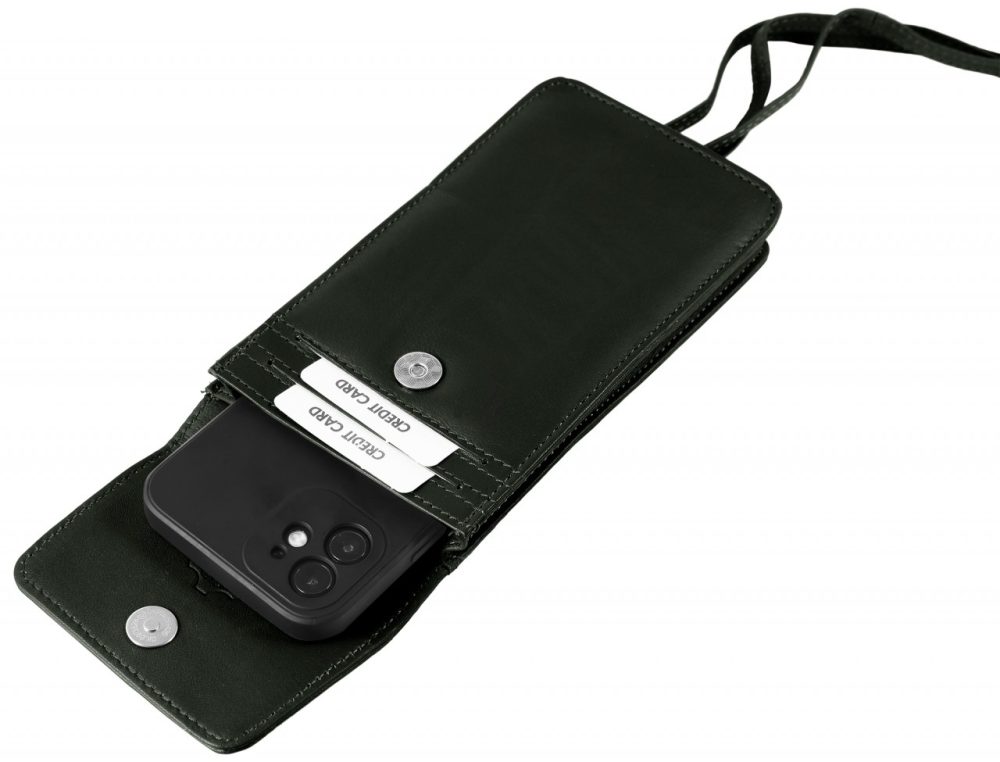 A bolsa de ombro para celular da marca Praktik é confeccionada em couro genuíno e está disponível em diversas cores. É ideal para muitas atividades de lazer e pode substituir o incômodo de carregar uma bolsa grande. A bolsa crossbody não só impressiona pelo seu design minimalista, mas também pela prática opção de armazenamento para todos os itens importantes. Ele é dividido em um compartimento principal (adequado para Smartphones até o tamanho do iPhone 13 pro Max), incluindo dois compartimentos para cartão de crédito, que podem ser facilmente abertos e fechados com o auxílio de um botão. A bolsa também possui um compartimento com zíper nas costas.