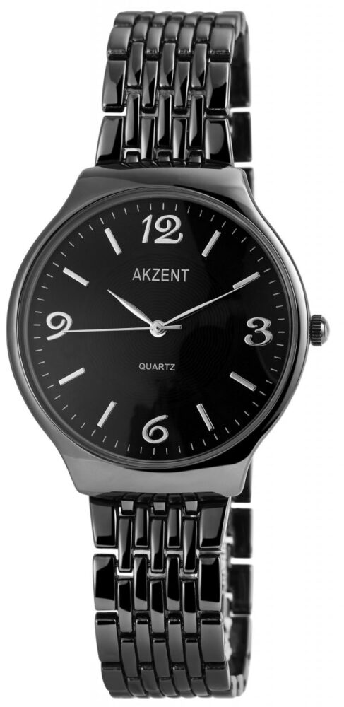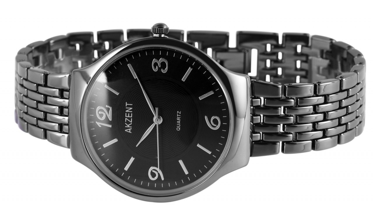 O relógio analógico Akzent para homem possui um movimento de quartzo de alta qualidade. A bracelete metálica tem 18 mm de largura e abre-se com um fecho de correr. O comprimento total é de 22 cm. A caixa metálica com vidro mineral mede 38 mm e tem 9 mm de altura. A tampa da caixa é feita de aço inoxidável. O relógio é testado contra pressão de 3 ATM.