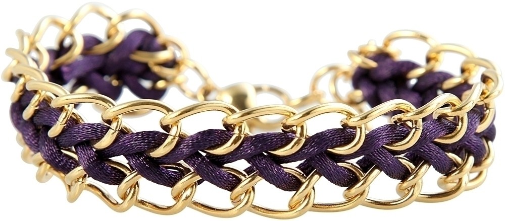 A pulseira com corrente de destaque é feita em aço inoxidável. Têxtil é usado como material de segunda banda. A cor da pulseira é dourada. A pulseira em aço inoxidável é refinada com um revestimento em ouro IP sólido. A textura é em aço inoxidável brilhante. A pulseira tem 18 cm de comprimento. A largura é de 18 mm.