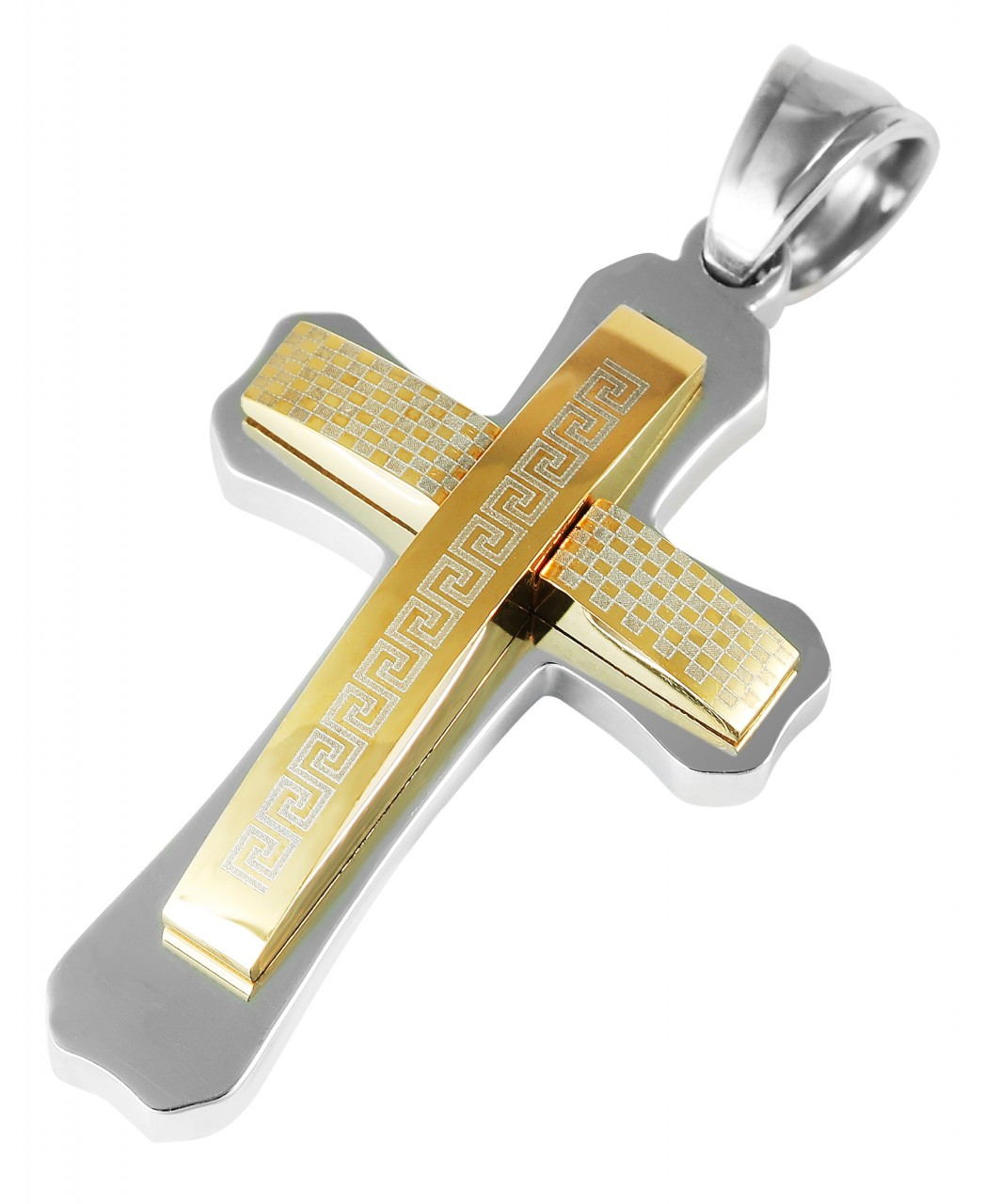 Feito em aço inoxidável de alta qualidade, este pingente está disponível em diversas cores, oferecendo diversas opções. O desenho inclui uma cruz polida com um elemento adicional decorado. Com um tamanho de 30 x 17 x 6 mm, o pingente pode ser facilmente preso a diferentes correntes e assim oferece diferentes opções de uso.