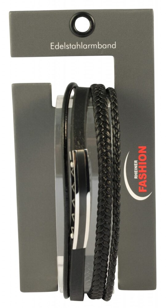 A pulseira “Marcellino” impressiona pelos seus quatro fios diferentes, às vezes trançados, torcidos ou lisos, feitos de pele sintética de alta qualidade. A placa de gravação bicolor com superfície preta fosca e bordas prateadas polidas oferece espaço suficiente para uma mensagem pessoal ou iniciais. O robusto fecho magnético feito de aço inoxidável na cor preta garante uma fixação segura e um visual masculino. Além disso, uma extensão adicional de 1 cm permite um ajuste flexível a qualquer pulso. Perfeito como presente para ocasiões especiais ou como destaque especial em sua linha de joias.