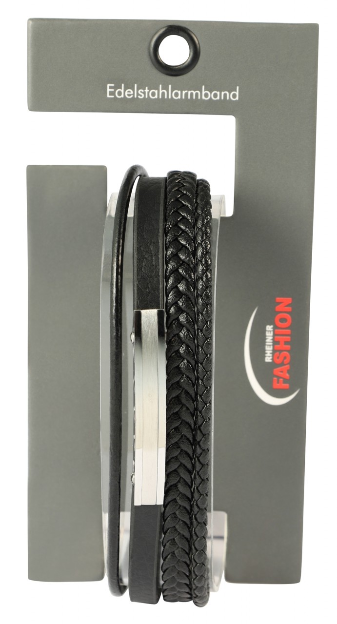 A pulseira “Marion” impressiona pelos seus quatro fios diferentes, às vezes trançados, torcidos ou lisos, feitos de pele sintética de alta qualidade. A placa de gravação, com superfície mate e bordas polidas, oferece espaço suficiente para uma mensagem pessoal ou iniciais. O robusto fecho magnético feito de aço inoxidável garante uma fixação segura e um visual masculino. Além disso, uma extensão adicional de 1 cm permite um ajuste flexível a qualquer pulso. O robusto fecho magnético feito de aço inoxidável garante uma fixação segura e um visual masculino.