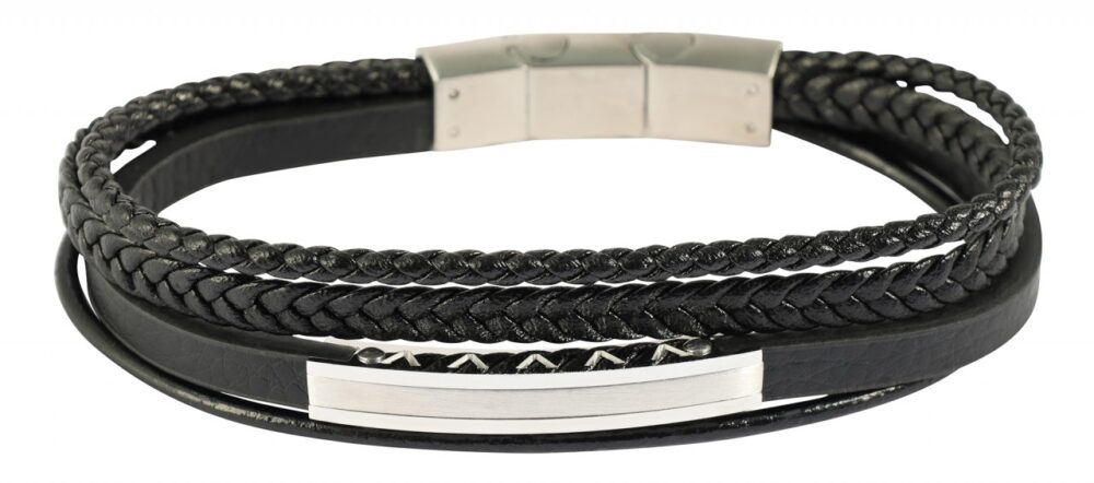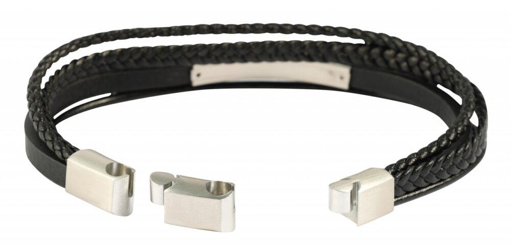 A pulseira “Marion” impressiona pelos seus quatro fios diferentes, às vezes trançados, torcidos ou lisos, feitos de pele sintética de alta qualidade. A placa de gravação, com superfície mate e bordas polidas, oferece espaço suficiente para uma mensagem pessoal ou iniciais. O robusto fecho magnético feito de aço inoxidável garante uma fixação segura e um visual masculino. Além disso, uma extensão adicional de 1 cm permite um ajuste flexível a qualquer pulso. O robusto fecho magnético feito de aço inoxidável garante uma fixação segura e um visual masculino.