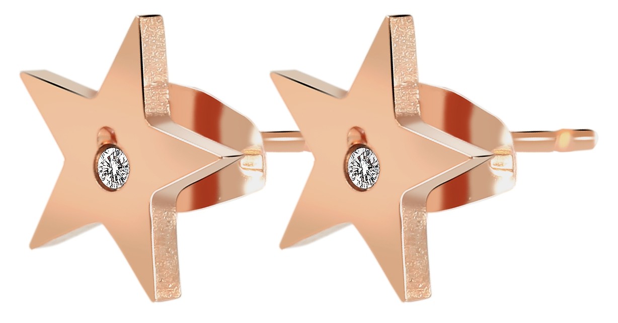 Os brincos da marca Praktik são feitos de aço inoxidável e estão disponíveis em diversas cores. O material é muito robusto, durável e ideal para quem sofre de alergias, uma vez que o aço inoxidável é particularmente amigo da pele. Além disso, as joias são parcialmente refinadas com revestimento iônico de alta qualidade. Os brincos são polidos e por isso brilham com um brilho especial. Há também uma pedra simili brilhante no meio dos brincos de estrela, que cria um efeito ainda mais radiante. Eles são fixados com um parafuso borboleta clássico e as porcas de conforto incluídas com placa de silicone fornecem suporte adicional. Os brincos têm comprimento de 10 mm, largura de 10 mm e espessura de material de 1 mm. Este produto é entregue em um cartão decorativo branco. Tem dimensões de 45 x 35 mm.
