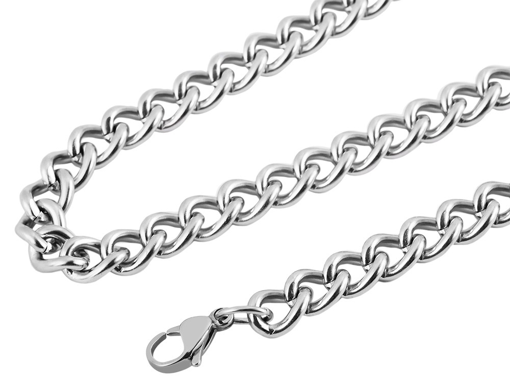 A corrente de aço inoxidável prateada da marca Akzent é feita num padrão blindado. Está disponível em comprimentos de 45 cm, 50 cm, 60 cm, 70 cm e 80 cm. A corrente tem 0,8 cm de largura e a espessura do material é de 2 mm. Uma corrente de extensão de 5 cm está também ligada a uma extremidade da corrente. Isto permite-lhe variar o comprimento total até 5 cm e adaptar a peça de joalharia a qualquer roupa. A corrente moderna pode ser aberta e fechada com um fecho de lagosta prateado, também feito de aço inoxidável.