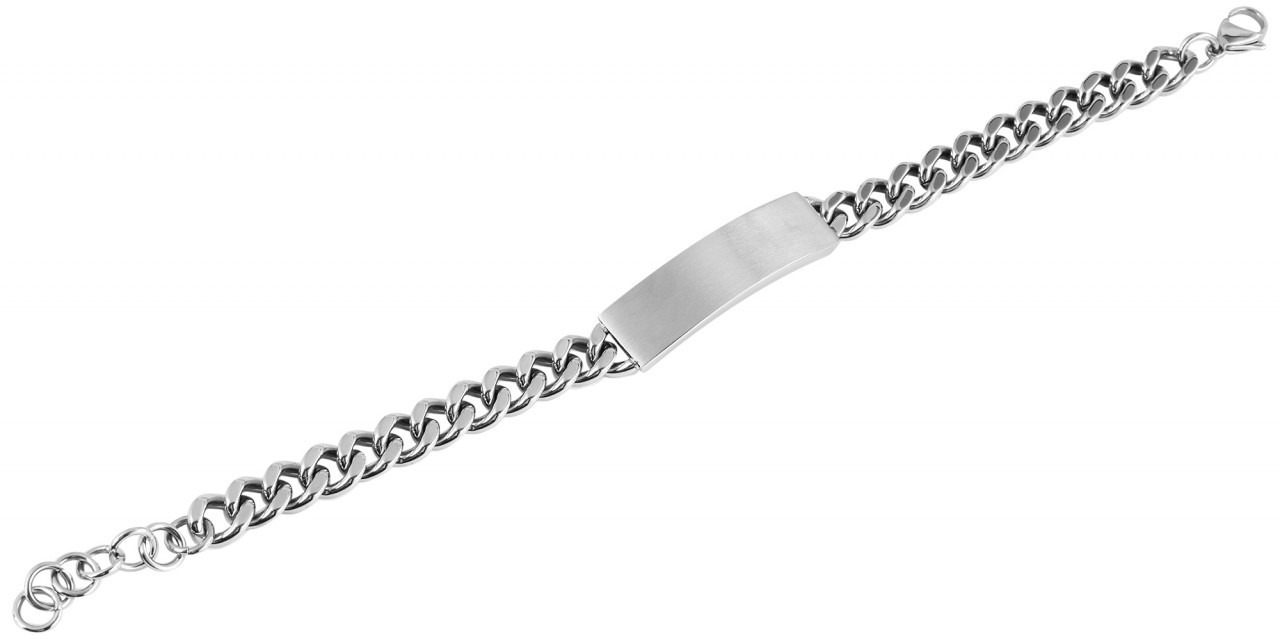 A pulseira de destaque é feita em um padrão blindado. Tem 21cm de comprimento mais 3cm de extensão. No meio há uma placa de gravação com 4,5 cm de comprimento. Isto tem uma espessura de 4 mm. A pulseira pode ser aberta e fechada com um fecho lagosta resistente, também feito de aço inoxidável. As dimensões da banda são 1,2 cm de largura e 4 mm de espessura. A placa de gravação, ou placa de identificação, é adequada para gravação. Uma joia personalizada que é um excelente presente.