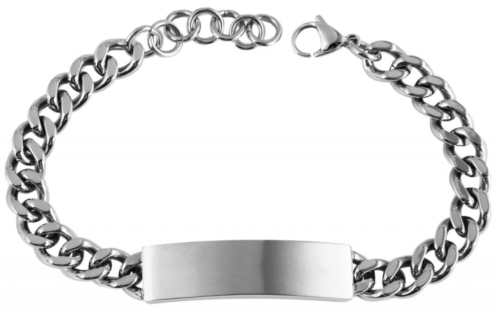 A pulseira de destaque é feita em um padrão blindado. Tem 21cm de comprimento mais 3cm de extensão. No meio há uma placa de gravação com 4,5 cm de comprimento. Isto tem uma espessura de 4 mm. A pulseira pode ser aberta e fechada com um fecho lagosta resistente, também feito de aço inoxidável. As dimensões da banda são 1,2 cm de largura e 4 mm de espessura. A placa de gravação, ou placa de identificação, é adequada para gravação. Uma joia personalizada que é um excelente presente.