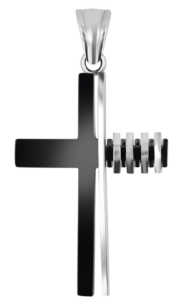 O design moderno do pendente cruzado “Alista” reflete-se não apenas no design bicolor, mas também no seu tamanho compacto de 33 x 20,5 x 4 mm. As linhas claras e o design moderno conferem ao pingente uma estética contemporânea que pode ser combinada de várias maneiras. A utilização do aço inoxidável garante não só uma aparência atraente, mas também longevidade e resistência. A possibilidade de prender o pingente com ilhó oval a diferentes tipos de correntes confere versatilidade adicional à joia – seja em uma simples corrente de âncora, em uma corrente sólida de meio-fio ou até mesmo em uma pulseira de couro da moda!