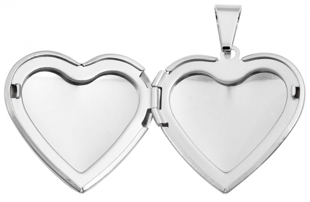 O encantador medalhão de coração da marca Akzent é feito de aço inoxidável e é perfeito para guardar pequenas lembranças ou fotos. O pingente pode ser gravado tanto no interior como no exterior e pode ser fornecido com diversos tipos de gravuras. Isso torna o medalhão também uma ideia perfeita de presente para uma pessoa querida. Qualquer número de correntes diferentes pode ser preso a um ilhó oval. O pingente de coração tem 27 mm de comprimento, 28 mm de largura e 7 mm de espessura.