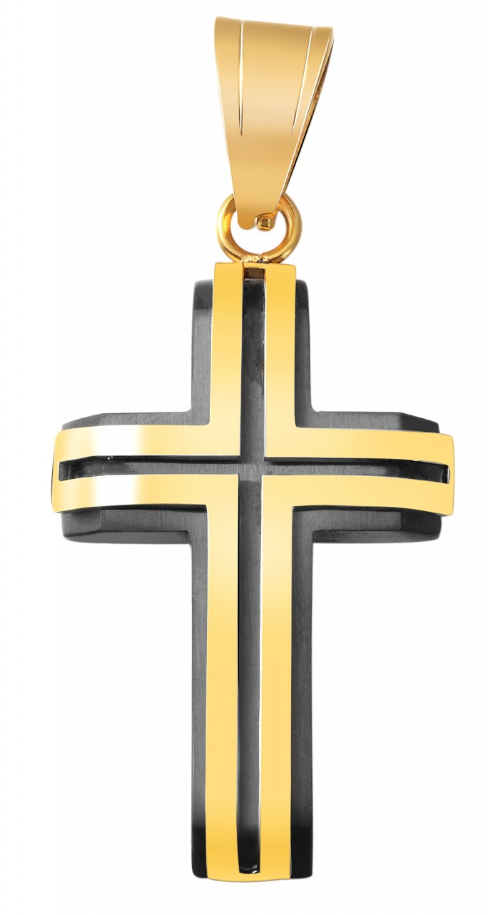 Akzent® Pingente Cruz Dourado/Preto em Aço Inoxidável Banhado a Íon