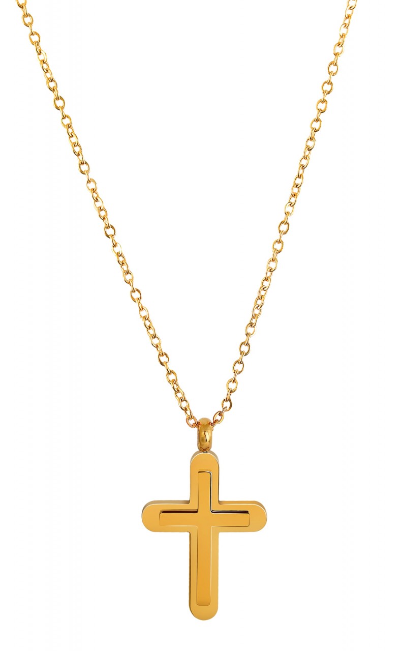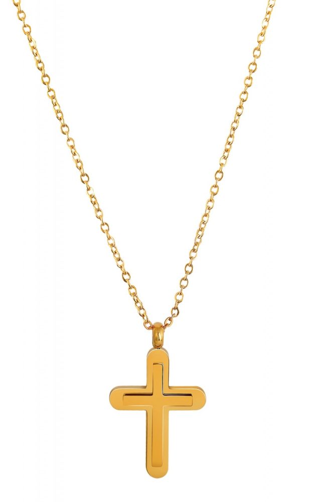 Akzent® Pingente Cruz Dourado em Aço Inoxidável - 0096