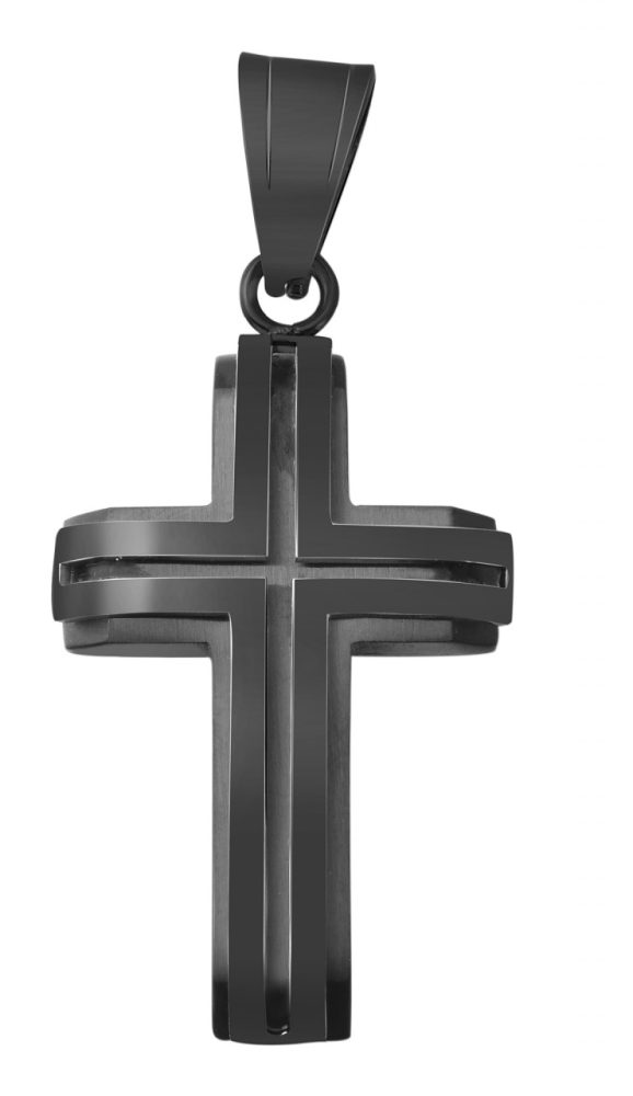 O pingente da marca theazim em forma de cruz é feito de aço inoxidável e está disponível em diversas cores. O material é muito robusto, durável e ideal para quem sofre de alergias, uma vez que o aço inoxidável é particularmente amigo da pele. O design do trailer é aprimorado pelo chamado “visual duplo”. Outro elemento cruzado feito de aço inoxidável é preso ao pendente cruzado e se destaca habilmente. A cruz tem acabamento mate e polido e pode ter qualquer gravação no verso. A combinação de elementos mate e brilhantes fazem deste pingente um acessório especial.