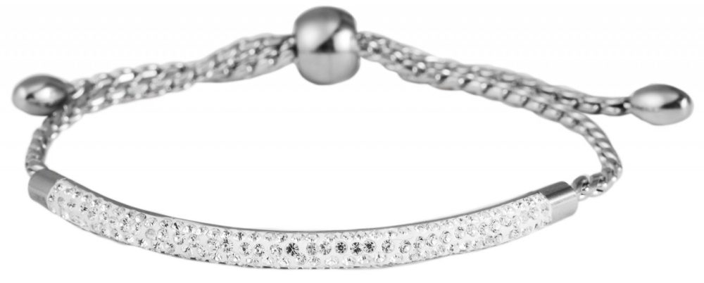 A pulseira feminina em padrão de corrente é feita de aço inoxidável. No meio da pulseira há um elemento de aço inoxidável, que é colocado uniformemente em quatro fileiras com um total de 164 pedras simili. A pulseira pode ser ajustada individualmente e adaptada a qualquer pulso através de um prático fecho adornado com uma pérola semicircular de 9 mm de diâmetro. Graças às pedras simil radiantes, a pulseira de aço inoxidável chama a atenção. A pulseira tem comprimento total de 23 cm, largura de 4 mm e espessura de 2 mm.