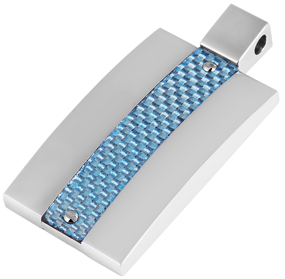 O pingente retangular da marca Akzent é feito de aço inoxidável e é adequado para todos os tipos de gravuras. Uma estreita faixa com aparência de carbono foi incorporada no meio do pingente. É decorado com duas pequenas cabeças de parafuso na parte superior e inferior, que conferem ao pingente um estilo esportivo. A frente é polida, a parte traseira é fosca. O tamanho do pingente é 36 mm de comprimento, 21 mm de largura e 5 mm de espessura.