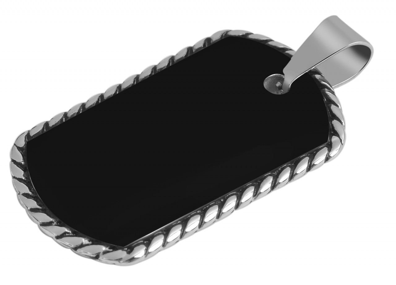 O pingente gravado da marca Akzent é feito de aço inoxidável e possui superfície altamente polida. Está disponível em diferentes variantes de cores. A borda externa do trailer é visualmente destacada por uma representação em espiral. O pingente é ideal para todos os tipos de gravuras. As dimensões do pingente de corrente são 34 mm de comprimento, 20 mm de largura e 4 mm de espessura.