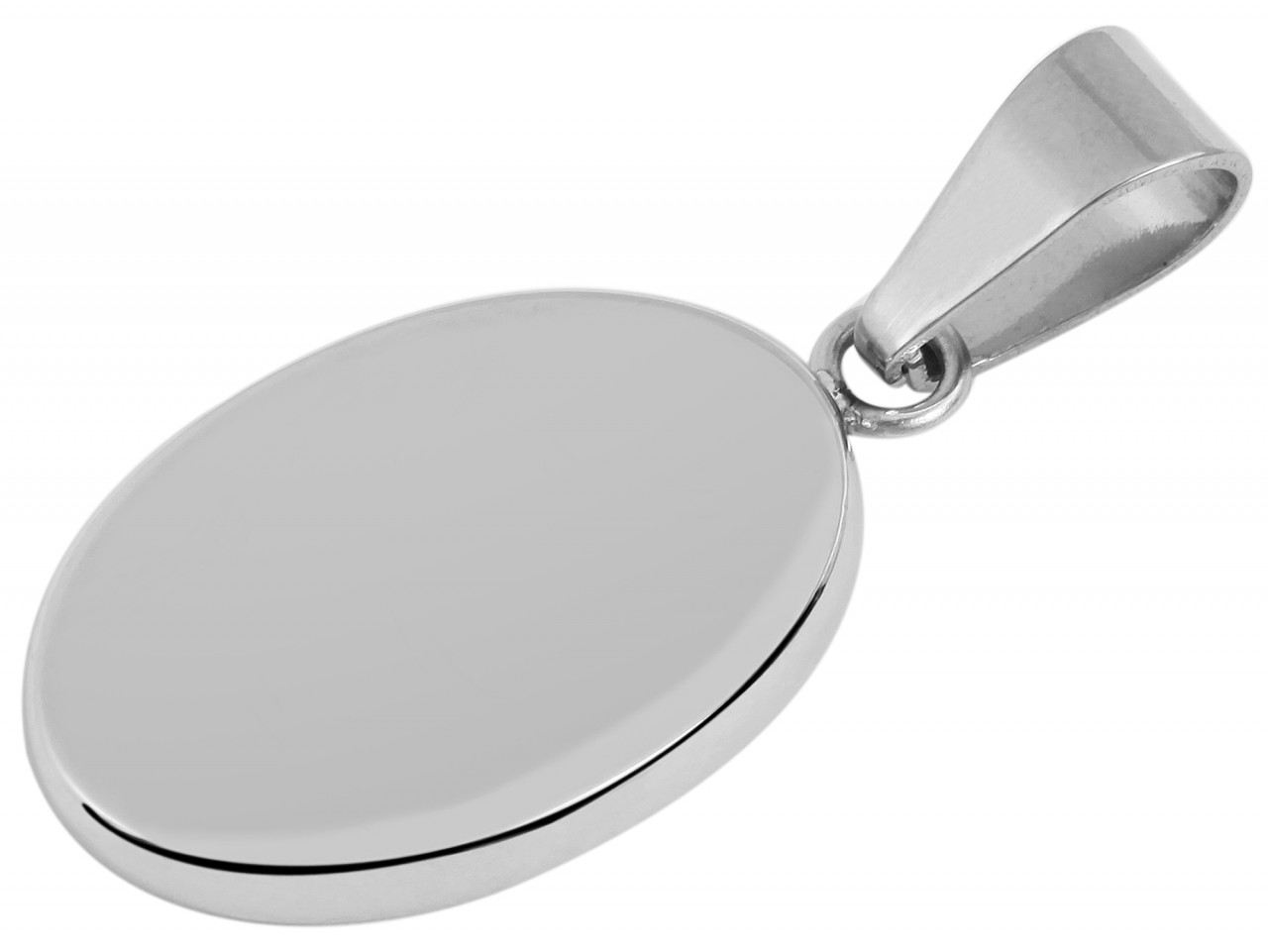 O pingente de colar da marca Akzent é um pingente gravado e feito de aço inoxidável. O pingente oval é prateado, altamente polido e adequado para todos os tipos de gravuras. As dimensões do pingente são 22 mm de comprimento, 15 mm de largura e 3 mm de espessura. Personalize sua joia com uma gravura para homenagear uma foto, um dia ou um evento especial.