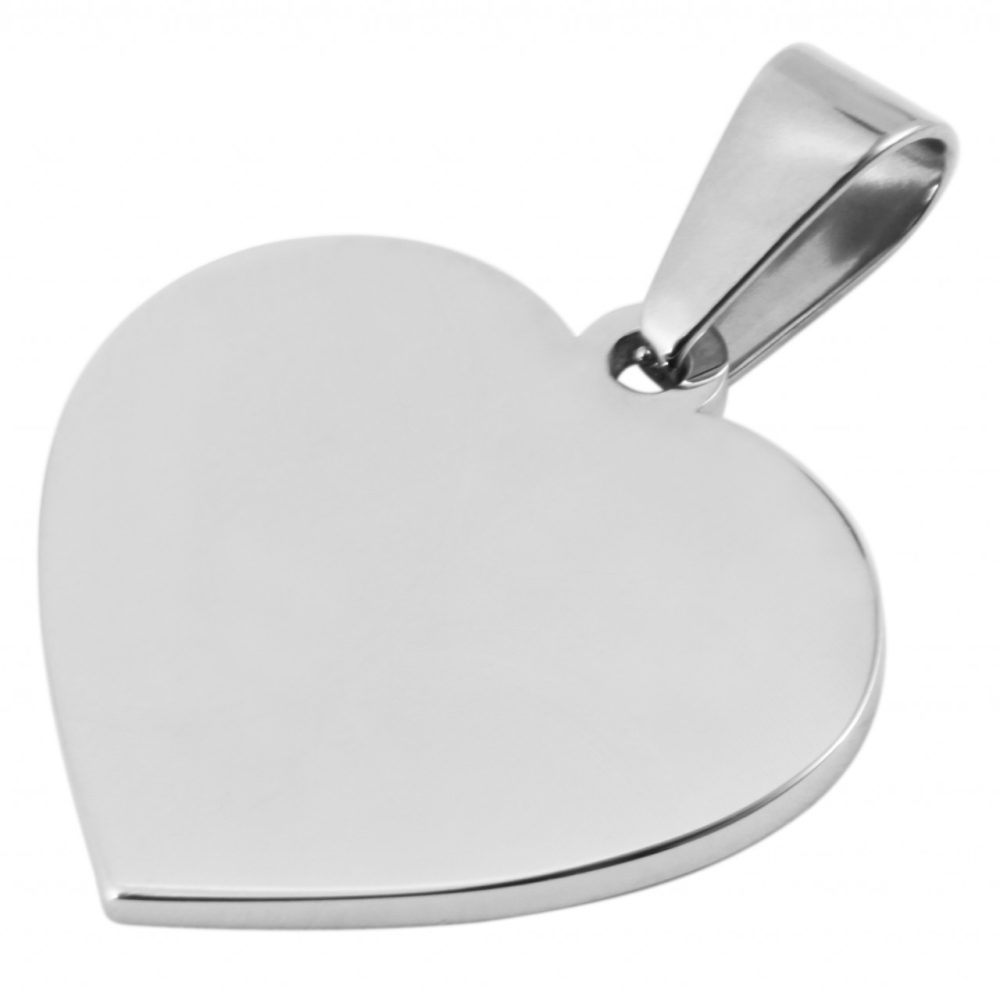O pingente da marca em forma de coração é feito de aço inoxidável e tem um acabamento de superfície altamente polido. O material é muito robusto, durável e ideal para quem sofre de alergias, uma vez que o aço inoxidável é particularmente amigo da pele. Devido ao ilhó oval, este pingente pode ser combinado com qualquer tipo de colar. Observe que uma corrente não está incluída. O coração tem comprimento de 25 mm, largura de 25 mm e espessura de material de 2 mm. Isso significa que o pingente oferece espaço suficiente para ser decorado individualmente com diferentes gravuras. A possibilidade de design individual torna-o uma ideia excelente e pessoal para presente. Com este pingente você pode fazer uma declaração pessoal rapidamente e usá-lo no dia a dia em qualquer ocasião.