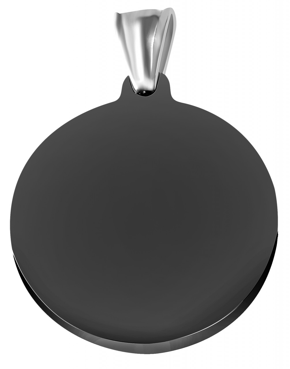 O pingente redondo gravado da marca Akzent é feito de aço inoxidável e está disponível em diversas cores. O material de alta qualidade revela-se particularmente robusto, durável e amigo da pele. O pingente é perfeito como presente personalizado, pois oferece espaço para personalização individual. Tanto a frente quanto a traseira são aprimoradas com um acabamento brilhante. Devido ao ilhó pode ser combinado com qualquer tipo de colar. Observe que um colar não está incluído. O pingente de aço inoxidável tem diâmetro de 28,5 mm e espessura de 3 mm. Com este pingente você pode fazer uma declaração pessoal rapidamente e usá-lo no dia a dia em qualquer ocasião.
