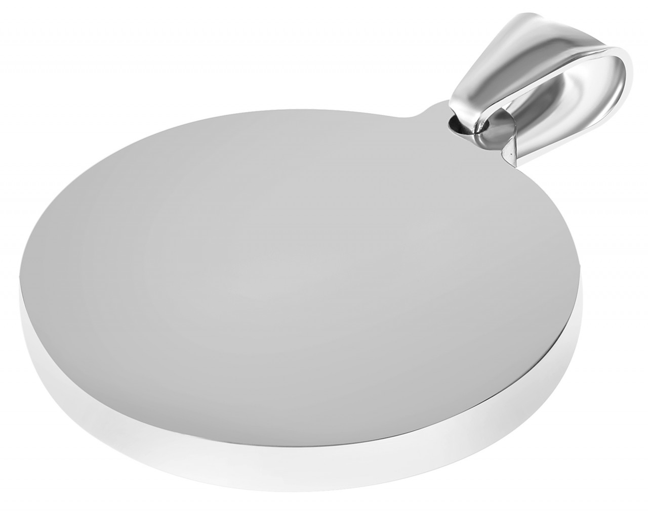 O pingente redondo gravado da marca Akzent é feito de aço inoxidável e está disponível em diversas cores. O material de alta qualidade revela-se particularmente robusto, durável e amigo da pele. O pingente é perfeito como presente personalizado, pois oferece espaço para personalização individual. Tanto a frente quanto a traseira são aprimoradas com um acabamento brilhante. Devido ao ilhó pode ser combinado com qualquer tipo de colar. Observe que um colar não está incluído. O pingente de aço inoxidável tem diâmetro de 28,5 mm e espessura de 3 mm. Com este pingente você pode fazer uma declaração pessoal rapidamente e usá-lo no dia a dia em qualquer ocasião.