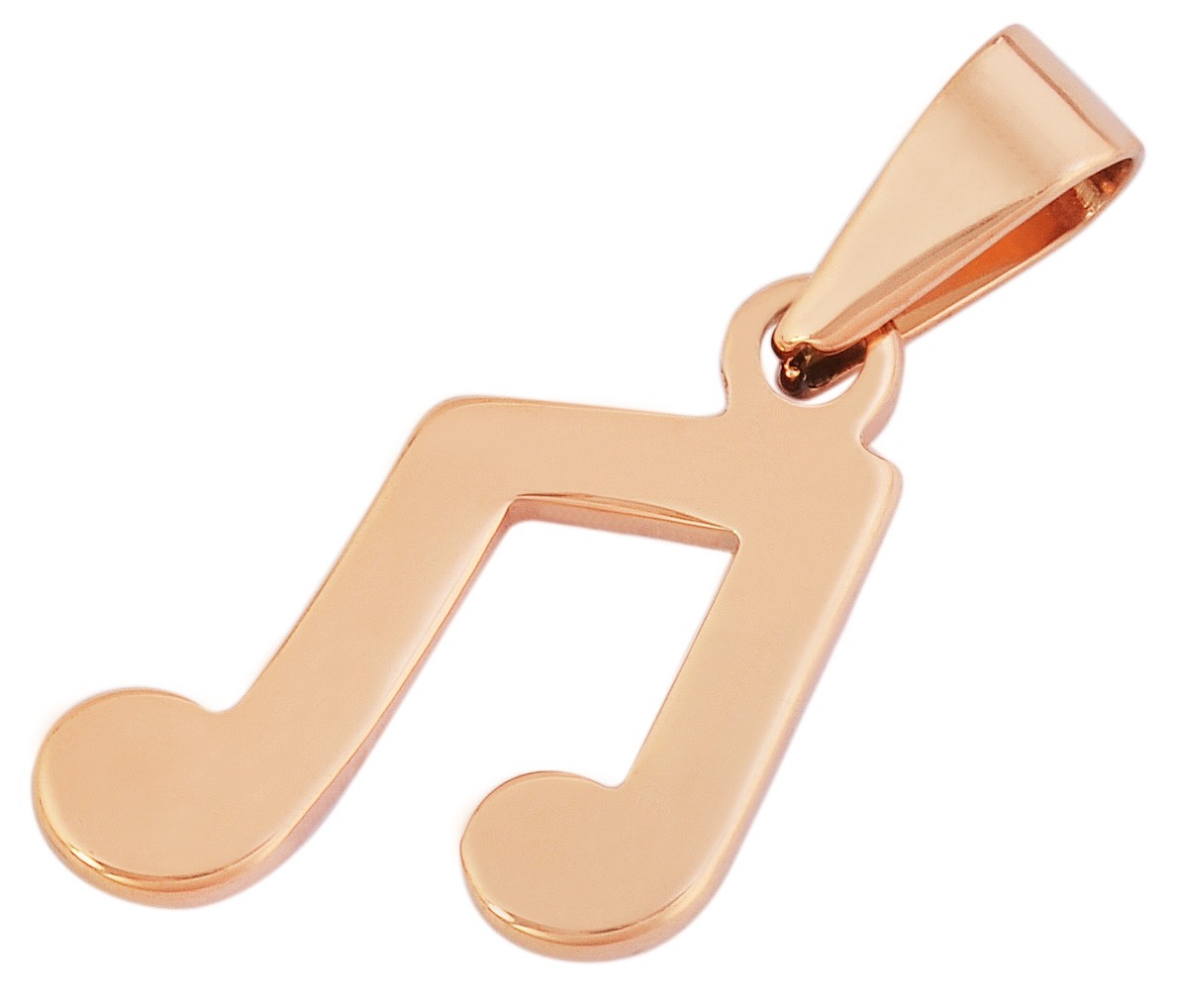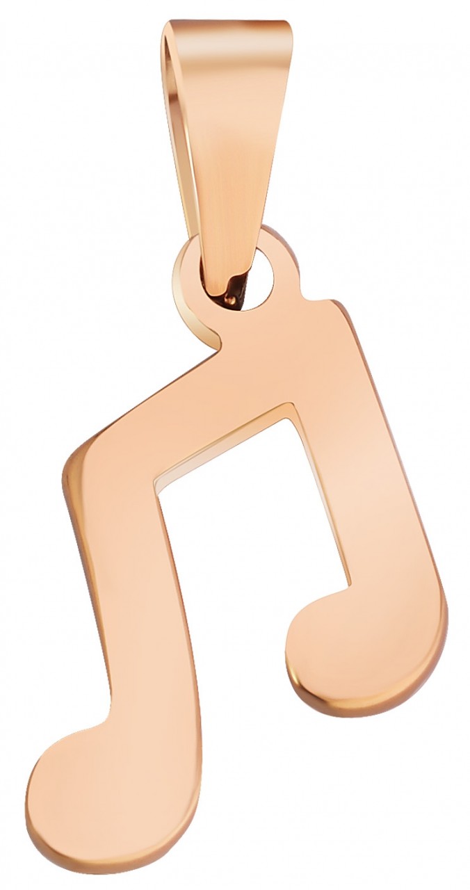 O pingente da marca Akzent em forma de nota musical é feito de aço inoxidável e está disponível em diversas cores. As dimensões são 30 mm de comprimento, 14 mm de largura e 2 mm de espessura.