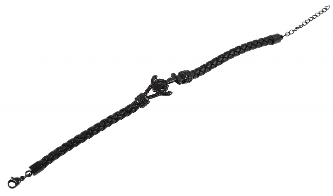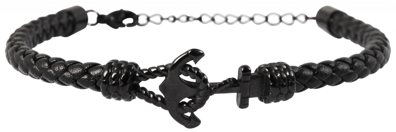 A pulseira de joias da marca Praktik é feita de uma pulseira de couro genuíno trançado e possui um elemento de aço inoxidável preto no meio em forma de âncora. As dimensões resultam de um comprimento total de 19 cm incluindo corrente extensora, largura de 1,6 cm e altura de 0,8 cm. A pulseira de joias pode ser aberta e fechada com um mosquetão preto, que pode ser preso em qualquer lugar na alça final ou na corrente de extensão. A pulseira marítima é uma ótima companhia para o dia a dia e é um bom presente.