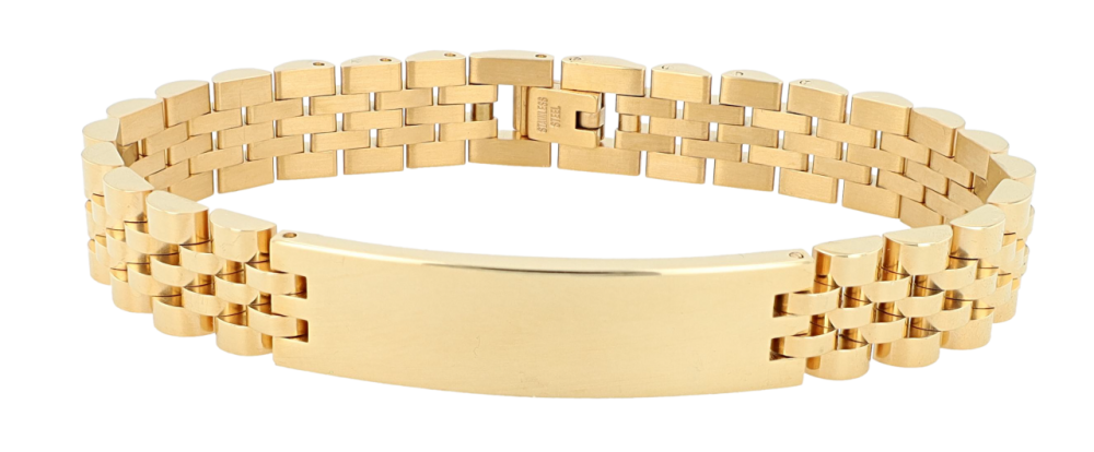 Feita em aço inoxidável de alta qualidade, esta pulseira combina elementos brilhantes com uma placa de gravação polida. Medindo 21 cm de comprimento, 12 mm de largura e 3 mm de espessura, oferece uma estética robusta e sofisticada. Disponível em diversas cores, existe uma joia adequada para cada amante de joias. A placa de identificação polida, com dimensões de 39 x 12 mm, oferece espaço suficiente para mensagens pessoais, iniciais ou símbolos. Outro aspeto prático desta pulseira gravada é a capacidade de remover elementos individuais para ajustar individualmente o comprimento. Isso garante um ajuste perfeito e confortável. O fecho do clipe não só garante uma fixação segura, mas também facilita a colocação e a remoção.