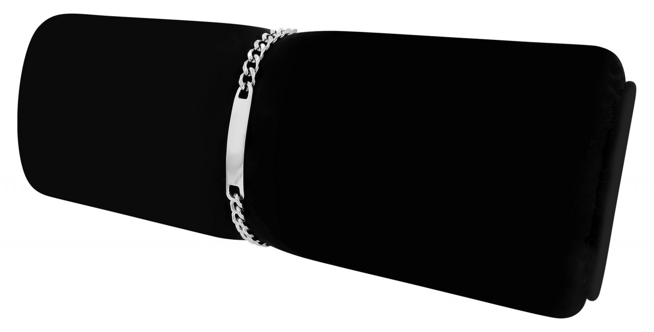 A pulseira de destaque é feita em um padrão blindado. Tem 18 cm de comprimento e contém no meio uma placa de gravação de 35 mm de comprimento e 6 mm de largura. Tem uma espessura de 1 mm e pode ser fornecida com vários tipos de gravuras. A pulseira pode ser aberta e fechada com um mosquetão resistente, que também é feito de aço inoxidável. As dimensões da pulseira são 18 cm de comprimento, 6 mm de largura e 3 mm de altura.