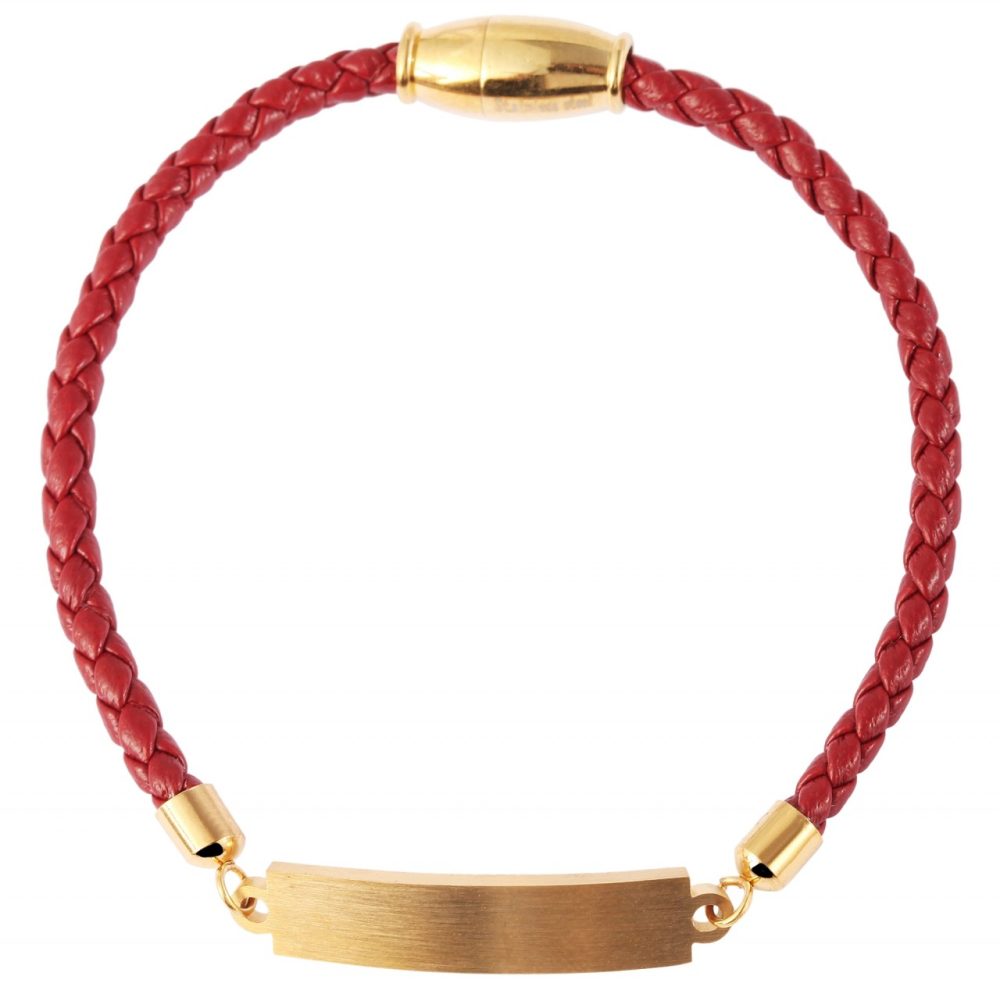A pulseira de jóias da marca Akzent é feita de uma bracelete entrançada, decorada com uma placa de gravação em aço inoxidável dourado no centro. Esta pode ser gravada em ambos os lados e é, por isso, ideal como presente personalizado. A moderna pulseira de jóias pode ser aberta e fechada com um prático fecho magnético, também feito de aço inoxidável. As dimensões resultam de um comprimento total de 17 cm, uma largura de 6 mm e uma espessura de 3 mm.