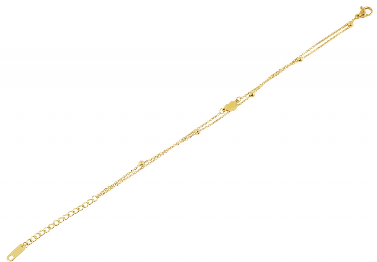 A pulseira de joias da marca Akzent é composta por duas correntes individuais e é feita de aço inoxidável em padrão âncora. Pequenas bolas de aço inoxidável e um elemento de coração no meio são fixados à pulseira em intervalos regulares. A moderna pulseira de aço inoxidável pode ser aberta e fechada com um mosquetão, que também é feito de aço inoxidável. Além disso, uma corrente extensora de 4 cm de comprimento é fixada em uma das extremidades da pulseira para variar o comprimento em até 4 cm e assim poder adaptá-la a qualquer pulso. As dimensões resultam de um comprimento total de 20 cm, largura de 6 mm e espessura de 3 mm. Uma pulseira moderna que é um ótimo presente.