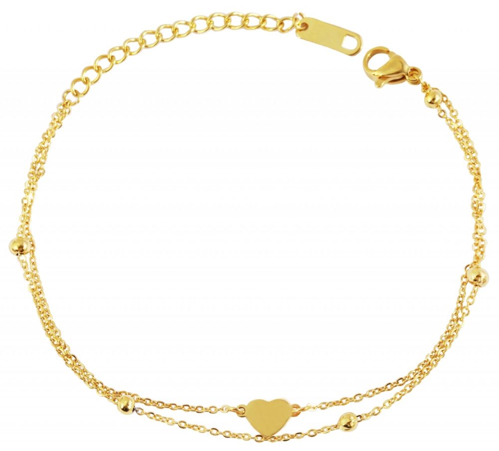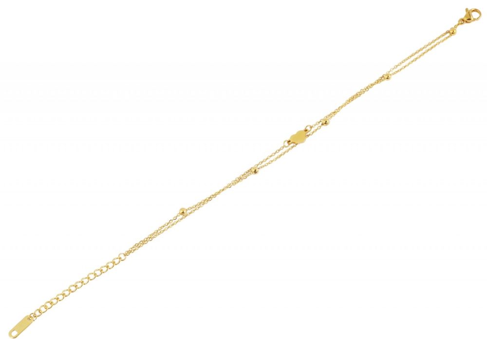 A pulseira de joias da marca Akzent é composta por duas correntes individuais e é feita de aço inoxidável em padrão âncora. Pequenas bolas de aço inoxidável e um elemento de coração no meio são fixados à pulseira em intervalos regulares. A moderna pulseira de aço inoxidável pode ser aberta e fechada com um mosquetão, que também é feito de aço inoxidável. Além disso, uma corrente extensora de 4 cm de comprimento é fixada em uma das extremidades da pulseira para variar o comprimento em até 4 cm e assim poder adaptá-la a qualquer pulso. As dimensões resultam de um comprimento total de 20 cm, largura de 6 mm e espessura de 3 mm. Uma pulseira moderna que é um ótimo presente.