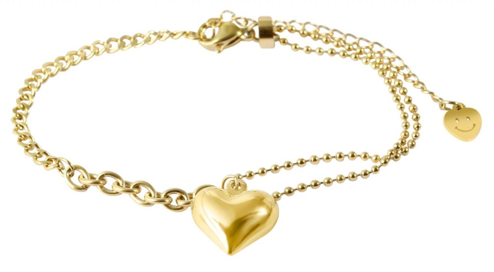 A sofisticada pulseira de joias da marca Akzent é feita de aço inoxidável. Tem 17 cm de comprimento e pode ser ampliado individualmente em 5 cm graças a uma corrente extensora. A pulseira consiste em diferentes tipos de correntes. A combinação do padrão de uma corrente de cobra e do típico padrão de âncora torna a pulseira um verdadeiro chamariz que rapidamente se tornará uma parte indispensável do seu pulso. Os diferentes fios da corrente são mantidos juntos por um pingente de coração no meio. Também é feito de aço inoxidável e tem comprimento de 16 mm, largura de 14 mm e espessura de 7 mm. O pingente de aço inoxidável oferece espaço suficiente para ser projetado individualmente com diversas gravuras de qualquer tipo.