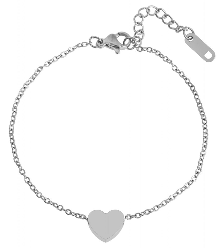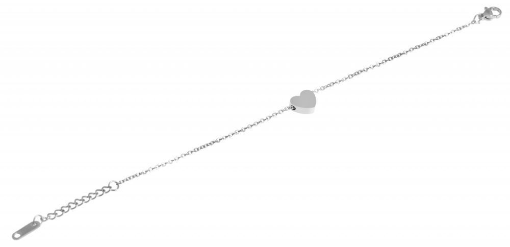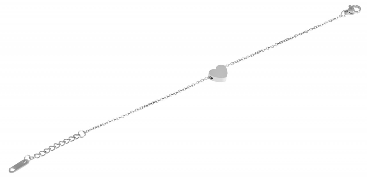 Pulseira Akzent com Pingente de Coração. Modelo Farhada de Cor Prateada em Aço Inoxidável. Tem largura de 0.9 cm, altura de 0.3 cm e comprimento de total de 17 cm, com possibilidade de extensão de 3 cm.