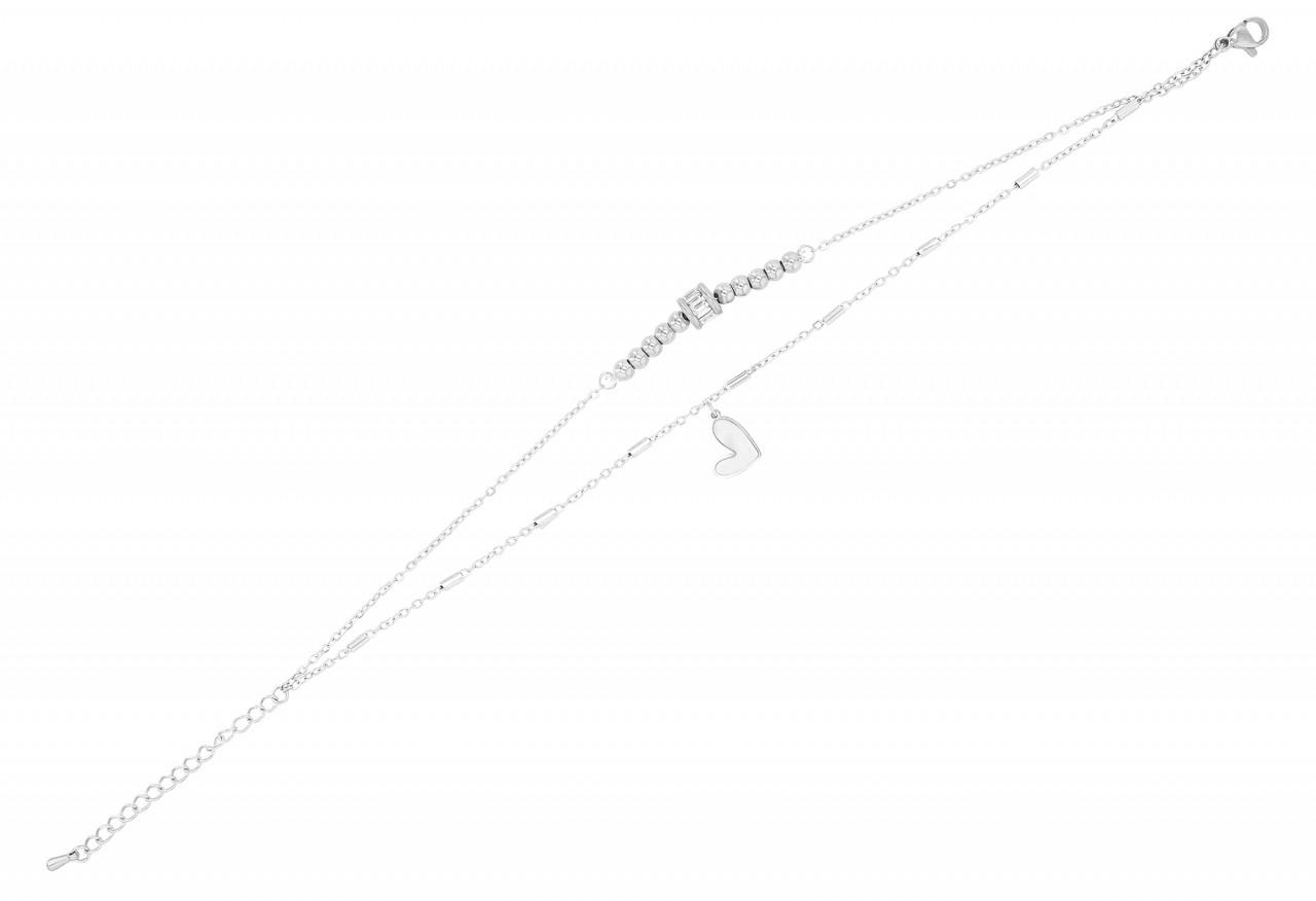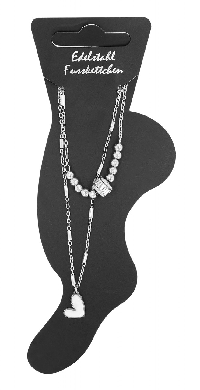 Pulseira de pé em aço inoxidável – Promete não só um design especial, mas também uma qualidade requintada! O material com que esta pulseira é feita é extremamente durável. É resistente à ferrugem, manchas e descoloração e também é hipoalergênico. A construção de duas fileiras confere à tornozeleira uma dimensão moderna e multicamadas. O fecho lagosta permite que esta joia seja usada confortavelmente sem comprometer o estilo ou a segurança. O comprimento de 21,5 cm, expansível em mais 5 cm, oferece não só flexibilidade, mas também a capacidade de ajustar a tornozeleira conforme desejado. O coração deste colar é o pingente com madrepérola. Com um tamanho de 11,5 x 12 mm, torna-se um chamariz com uma presença cintilante.