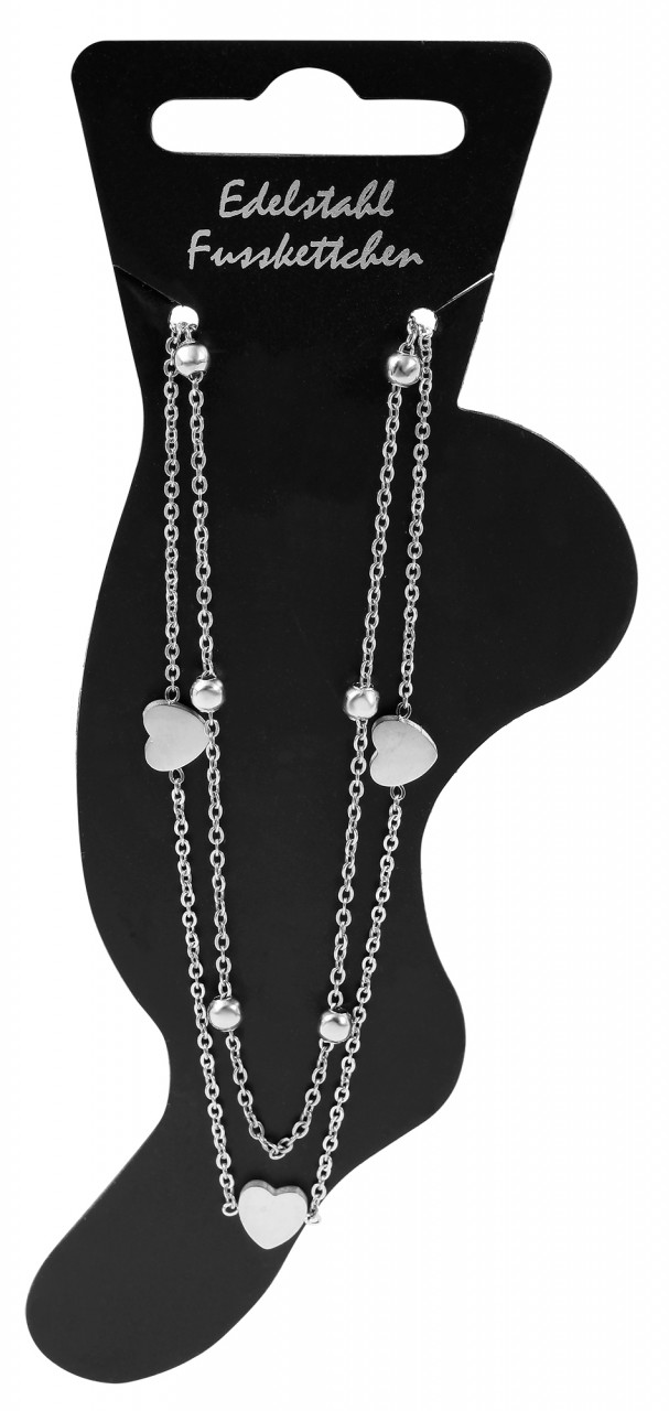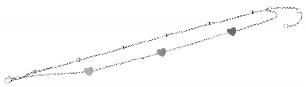 Akzent® Pulseira de Pé Corações Prateada em Aço Inoxidável - 0048