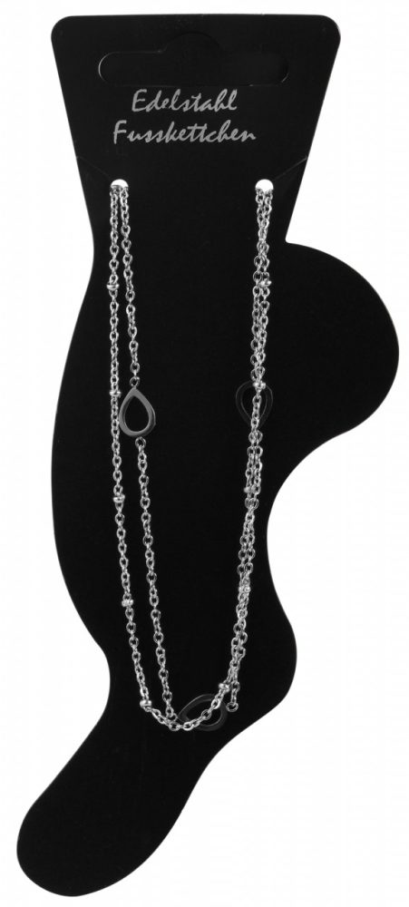 A pulseira de pé da marca Akzent é composta por duas correntes de âncora de comprimentos diferentes. As correntes têm 24 cm de comprimento e há também uma corrente extensora de 5 cm presa em uma das pontas da joia do pé. Isto permite variar o comprimento em até 5 cm e adaptar a corrente a qualquer tornozelo. A divertida pulseira de pé pode ser aberta e fechada com um mosquetão, que também é feito de aço inoxidável. As dimensões resultam de um comprimento de 24 cm e uma espessura de corrente de 1 mm. As modernas joias para os pés completam cada look e também são um ótimo presente. Por exemplo, para aniversários, Natal ou Dia dos Namorados.
