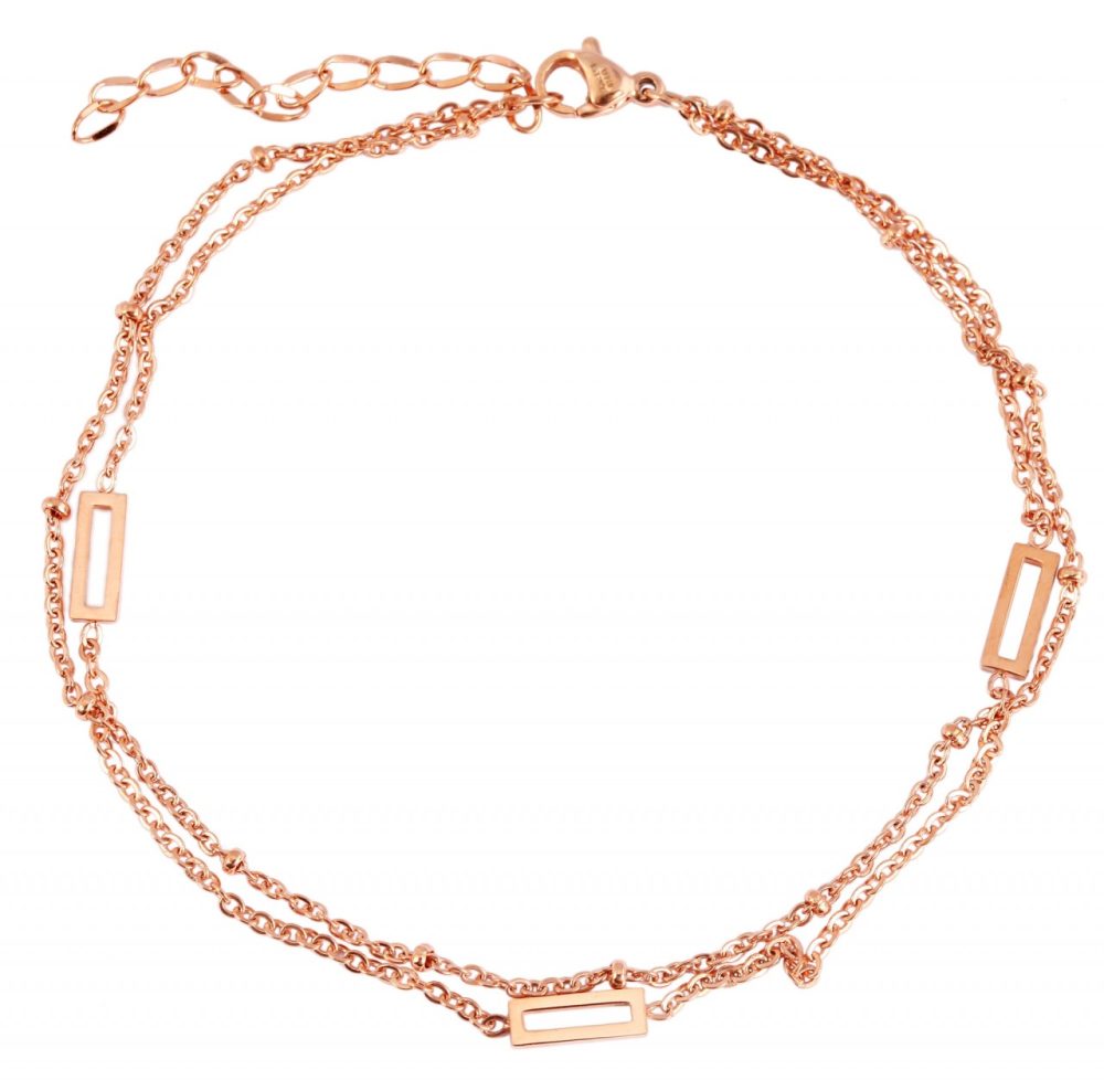 A pulseira de pé da marca Akzent é composta por duas correntes de âncora de comprimentos diferentes. A mais curta das duas correntes tem 23 cm de comprimento e é decorada com bolas de aço inoxidável de 2 mm de espessura em intervalos regulares. A mais longa das duas correntes tem 23,5 cm de comprimento e é decorada com retângulos de 4 mm de largura e 12 mm de comprimento em intervalos regulares. Também são feitos de aço inoxidável e dão um visual especial à pulseira moderna. A divertida pulseira de pé pode ser aberta e fechada com um mosquetão, que também é feito de aço inoxidável. Além disso, uma corrente extensora de 5 cm de comprimento é fixada em uma das extremidades da joia. Isto permite variar o comprimento em até 5 cm e adaptar a corrente a qualquer tornozelo. As dimensões resultam de um comprimento de 24 cm e uma espessura de material de 1 mm.