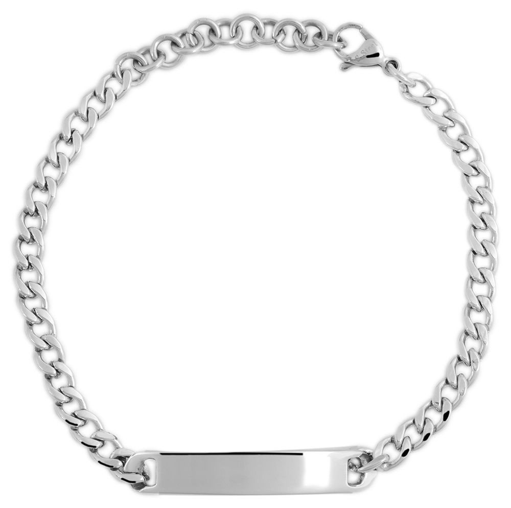 A pulseira gravada da marca Praktik é feita de aço inoxidável em padrão blindado e está disponível em diversas cores. A pulseira pode ser aberta e fechada com um prático fecho lagosta, também feito de aço inoxidável. A pulseira do meio-fio tem 19 cm de comprimento, 6 mm de largura e 2 mm de espessura da corrente. Graças a uma corrente extensora, o comprimento pode ser aumentado em 4 cm e assim ajustado individualmente ao pulso. No meio da pulseira há uma placa de gravação integrada altamente polida. Tem comprimento de 50 mm e largura de 6 mm e pode ser fornecido com diversos tipos de gravuras. A faixa de identificação pode ser desenhada individual e…