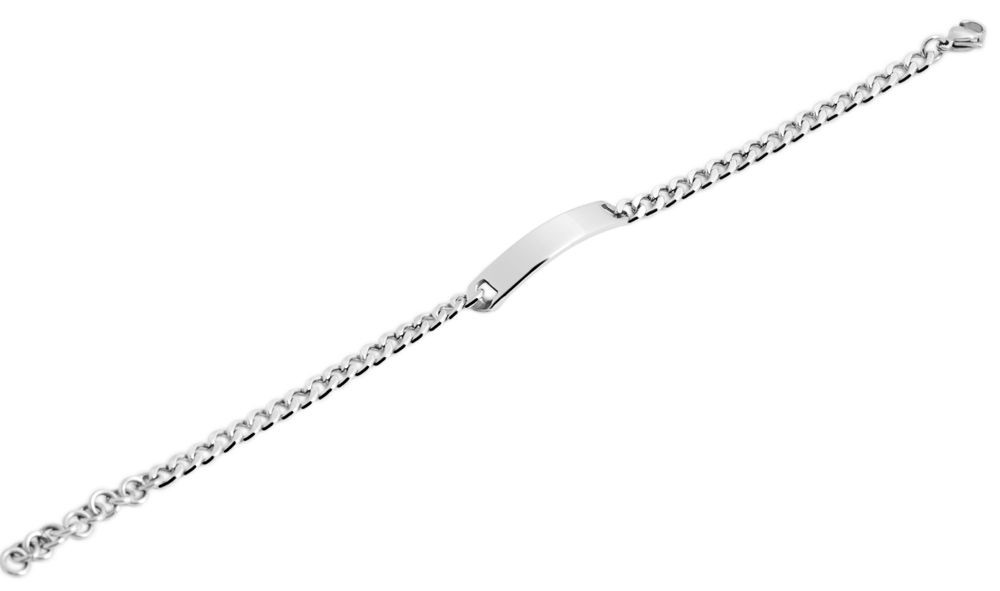 A pulseira gravada da marca Praktik é feita de aço inoxidável em padrão blindado e está disponível em diversas cores. A pulseira pode ser aberta e fechada com um prático fecho lagosta, também feito de aço inoxidável. A pulseira do meio-fio tem 19 cm de comprimento, 6 mm de largura e 2 mm de espessura da corrente. Graças a uma corrente extensora, o comprimento pode ser aumentado em 4 cm e assim ajustado individualmente ao pulso. No meio da pulseira há uma placa de gravação integrada altamente polida. Tem comprimento de 50 mm e largura de 6 mm e pode ser fornecido com diversos tipos de gravuras. A faixa de identificação pode ser desenhada individual e pessoalmente, tornando-a um presente inesquecível.