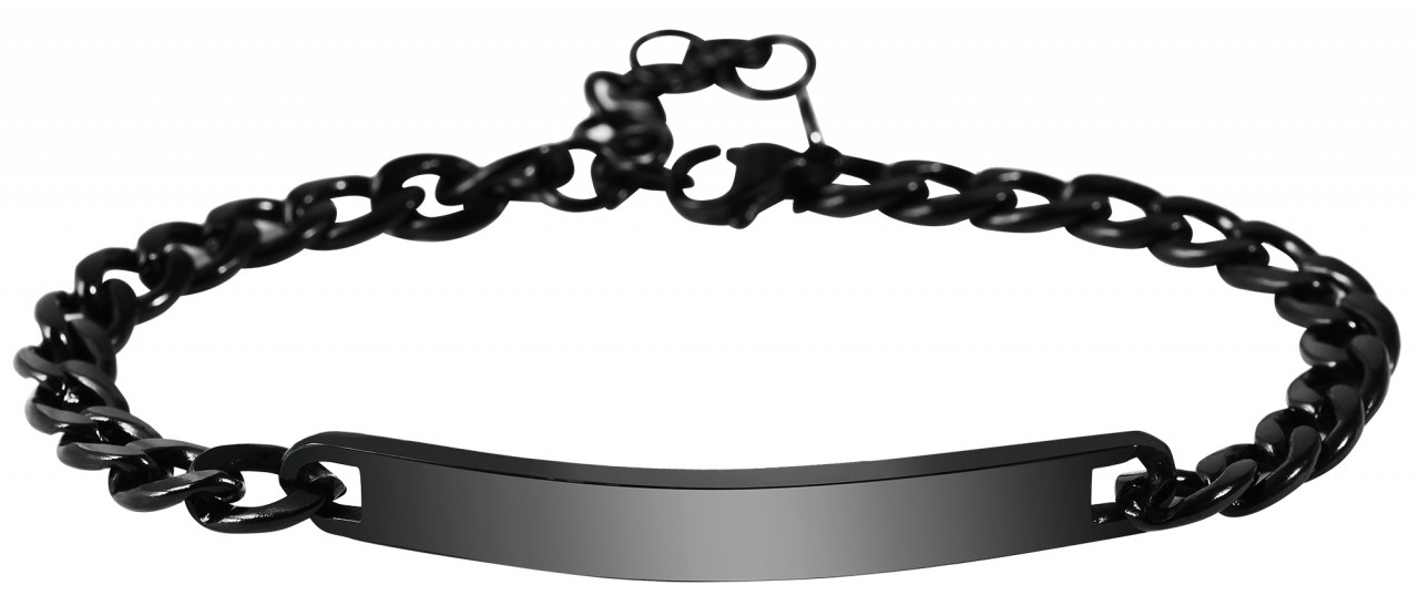A pulseira gravada da marca Praktik é feita de aço inoxidável em padrão blindado e está disponível em diversas cores. A pulseira pode ser aberta e fechada com um prático fecho lagosta, também feito de aço inoxidável. A pulseira do meio-fio tem 19 cm de comprimento, 6 mm de largura e 2 mm de espessura da corrente. Graças a uma corrente extensora, o comprimento pode ser aumentado em 4 cm e assim ajustado individualmente ao pulso. No meio da pulseira há uma placa de gravação integrada altamente polida. Tem comprimento de 50 mm e largura de 6 mm e pode ser fornecido com diversos tipos de gravuras. A faixa de identificação pode ser desenhada individual e pessoalmente, tornando-a um presente inesquecível.