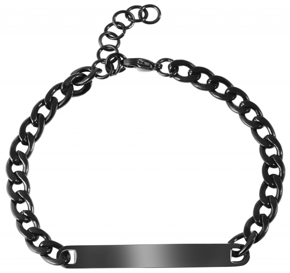 A pulseira gravada da marca Praktik é feita de aço inoxidável em padrão blindado e está disponível em diversas cores. A pulseira pode ser aberta e fechada com um prático fecho lagosta, também feito de aço inoxidável. A pulseira do meio-fio tem 19 cm de comprimento, 6 mm de largura e 2 mm de espessura da corrente. Graças a uma corrente extensora, o comprimento pode ser aumentado em 4 cm e assim ajustado individualmente ao pulso. No meio da pulseira há uma placa de gravação integrada altamente polida. Tem comprimento de 50 mm e largura de 6 mm e pode ser fornecido com diversos tipos de gravuras. A faixa de identificação pode ser desenhada individual e pessoalmente, tornando-a um presente inesquecível.