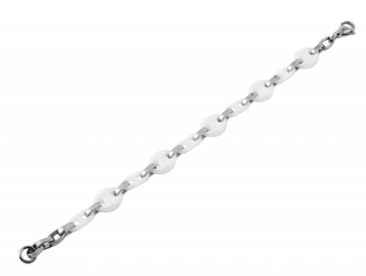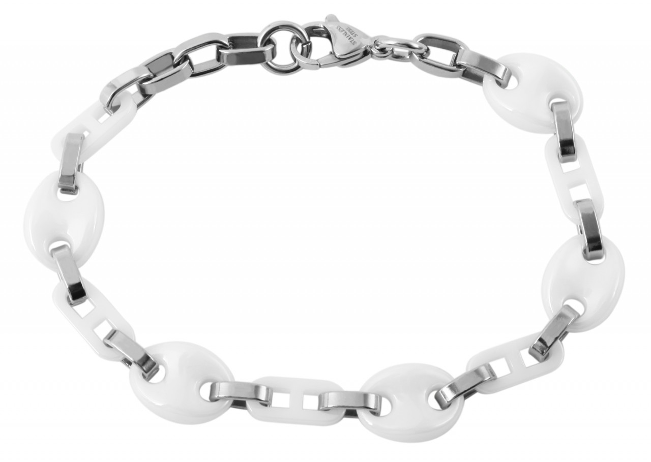 Descubra a versatilidade e o charme estiloso desta pulseira. Esta joia única combina a durabilidade do aço inoxidável com o brilho elegante dos elementos cerâmicos. A pulseira impressiona pelo seu acabamento de alta qualidade e pela interação bem-sucedida dos materiais. Os elementos em aço inoxidável e cerâmica criam um contraste harmonioso e conferem um aspecto atraente. Um fecho lagosta garante uma fixação fácil e segura ao pulso. Este fecho não só proporciona uma conexão robusta, mas também permite que a pulseira seja colocada e retirada com facilidade. A funcionalidade do fecho garante que ele permaneça firmemente no lugar enquanto você aproveita o dia a dia. Com 21 cm de comprimento, 11 mm de largura e 5 mm de espessura, a pulseira se ajusta confortavelmente a qualquer pulso.