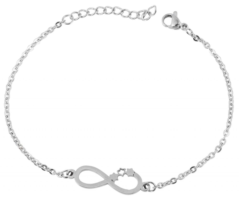 A pulseira da moda da marca Praktik é feita de aço inoxidável de alta qualidade e no popular padrão de corrente de âncora. No meio da pulseira existe um elemento feito de aço inoxidável que representa um símbolo do infinito. O elemento infinito representa a ideia de infinito e eternidade. Isso nos lembra que nossas conexões com outras pessoas e nosso amor não têm fim. Isso habilmente define o cenário e dá à pulseira um significado especial. A pulseira Infinity tem 17 cm de comprimento e pode ser estendida em mais 3 cm, permitindo um ajuste universal para a maioria dos pulsos. Um fecho lagosta garante uma fixação fácil e segura ao pulso. Este fecho não só proporciona uma conexão robusta, mas também permite que a pulseira seja colocada e retirada com facilidade.